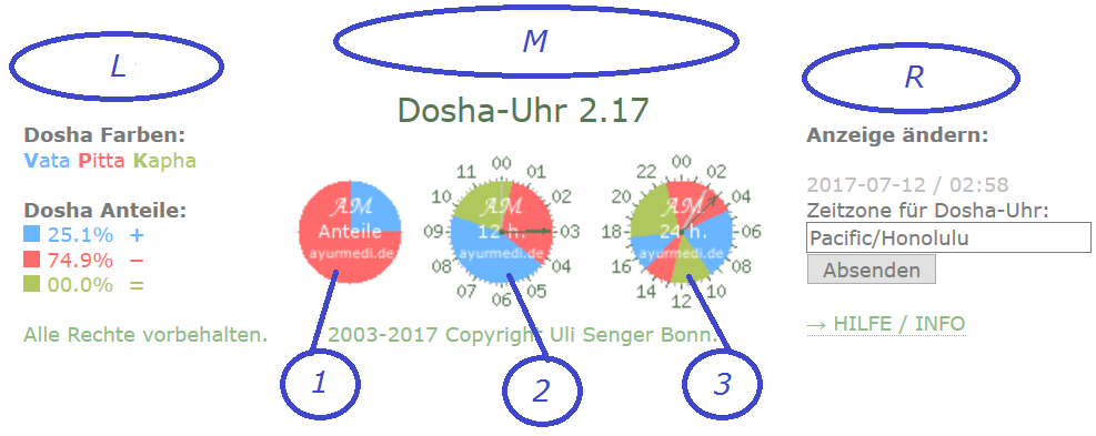 (1) Link zur Anzeige der %-Dosha-Anteile in dieser Minute; ggf. mit Klimawerten